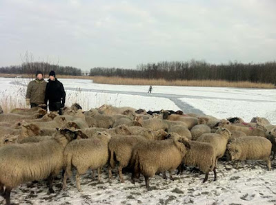 Het vriest, de plas is bevroren, er zijn enkele banen geveegd, want het heeft behoorlijk gesneeuwd en er wordt geschaatst. Ik loop met de kudde langs de plas en geniet van het prachtige schouwspel, de besneeuwde grasvelden, golvende rietkragen, bevroren wateren met schaatsende kinderen, een echt oud Hollands tafereel.