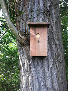 Ik geniet steeds van je prachtverhalen en ik denk dat ik de oplossing van het gesloten vogelhuisje weet. Wellicht is dit bedoeld voor een specht kan hij zijn eigen huisje open timmeren.